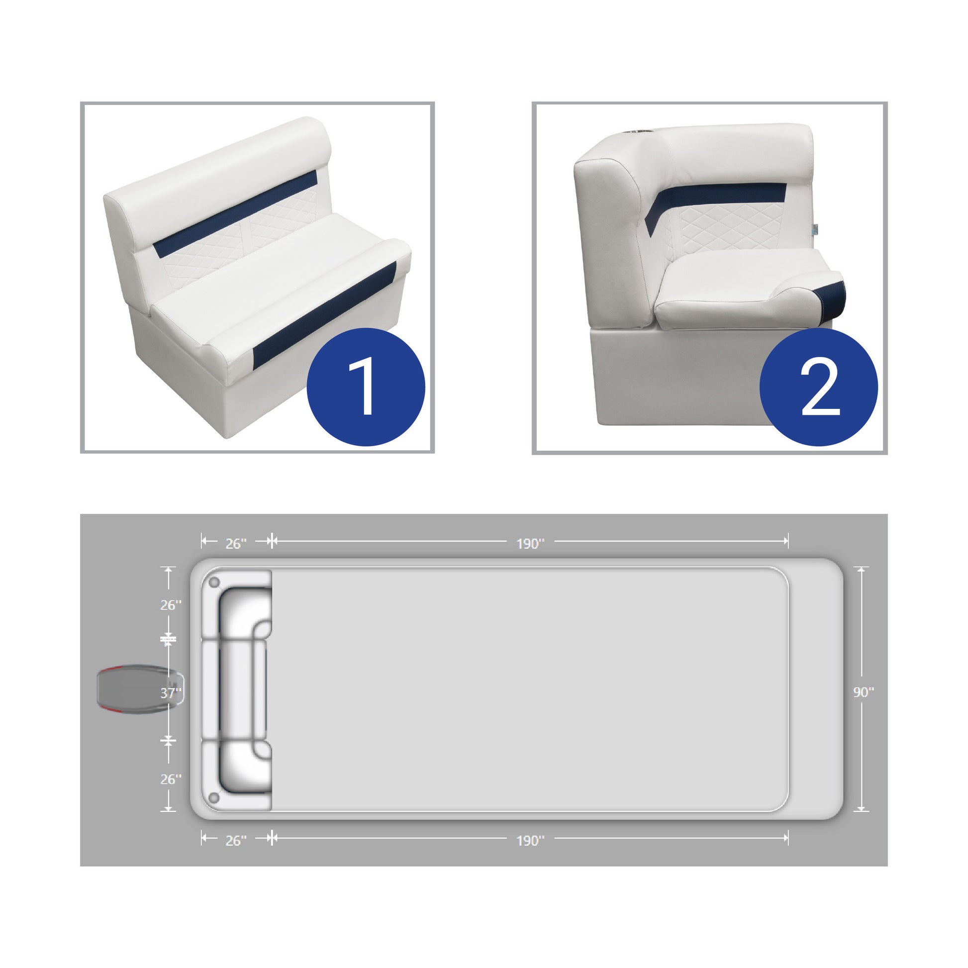 Wise DLX Rear Couch Pontoon Furniture Set Ready to upgrade your pontoon furniture? This Wise DLXRC-1900K Rear couch package will be perfect addition to your pontoon. These pontoon couch combines comfort, durability, and style making it the perfect blend for family fun and entertaining out on the water. This pontoon package is perfect for fully outfitting your pontoon with all you need. Made with high compression foam, these cushions are contoured to offer exceptional support for long days fishin