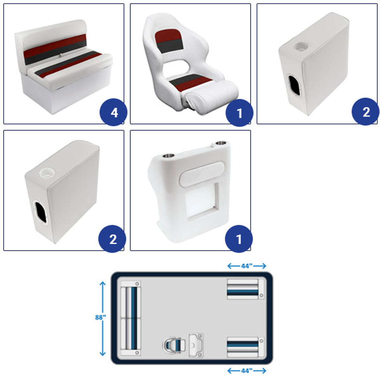 El conjunto de muebles Wise Small Traditional Pontoon está diseñado para una comodidad extrema con sus asientos acolchados de espuma de compresión resistentes a rozaduras, marcas y moho. Sus estructuras de plástico de alta resistencia con un acabado de vinilo marino de 840 g garantizan una larga duración en cada salida en barco. Colores de lujo disponibles: 1008 - Blanco/Azul Marino, 1009 - Blanco/Rojo/Carbón, 1011 - Gris/Azul Marino, 1012 - Gris/Rojo/Carbón. Características de los muebles.