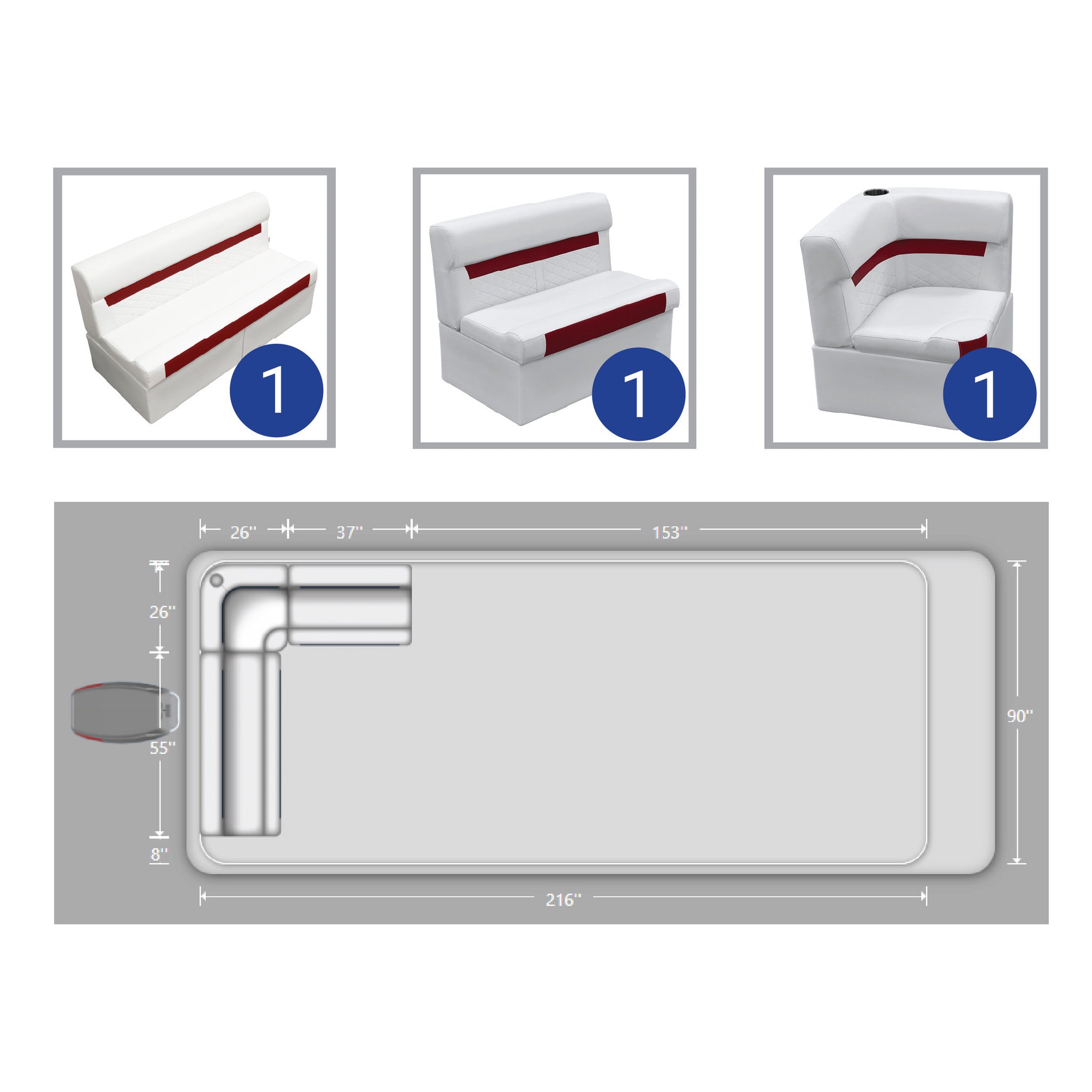 Ensemble de meubles de ponton Wise DLX Small Rear L avec dossier basculant