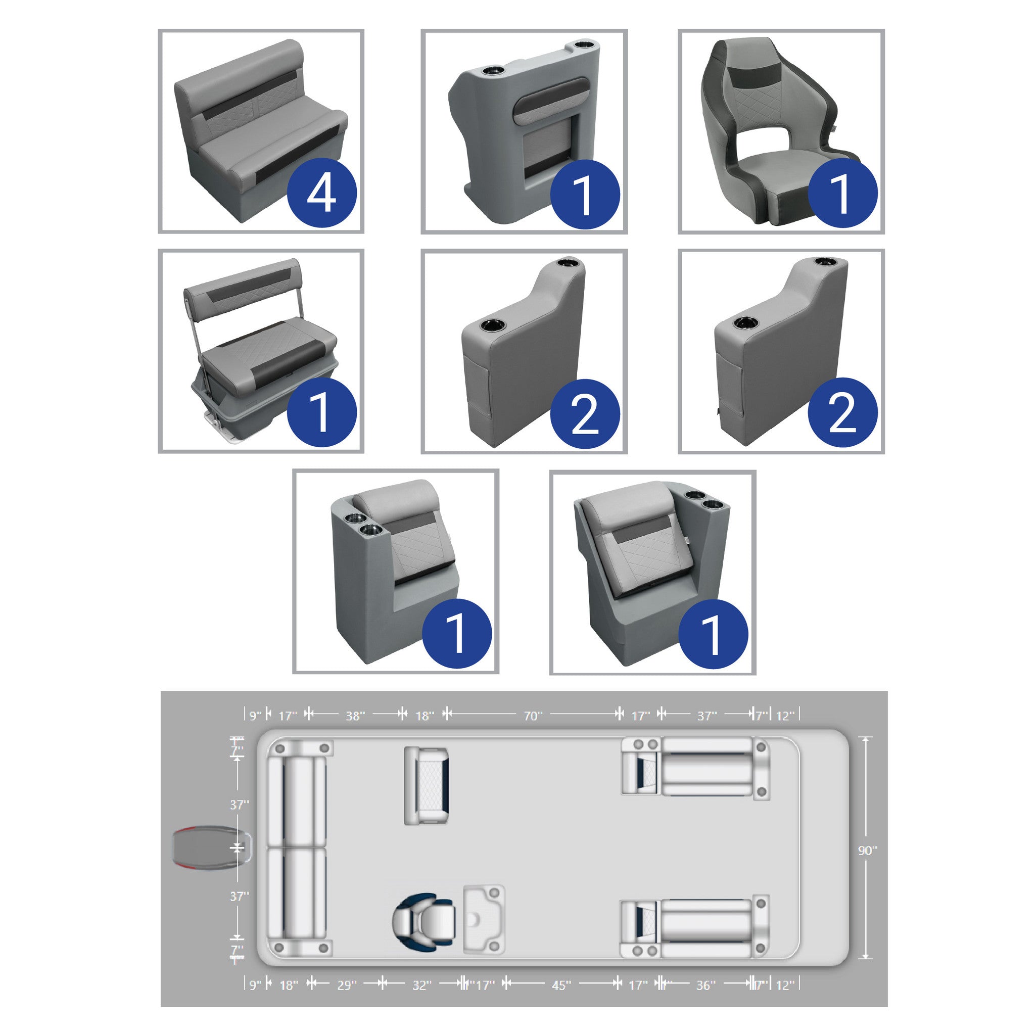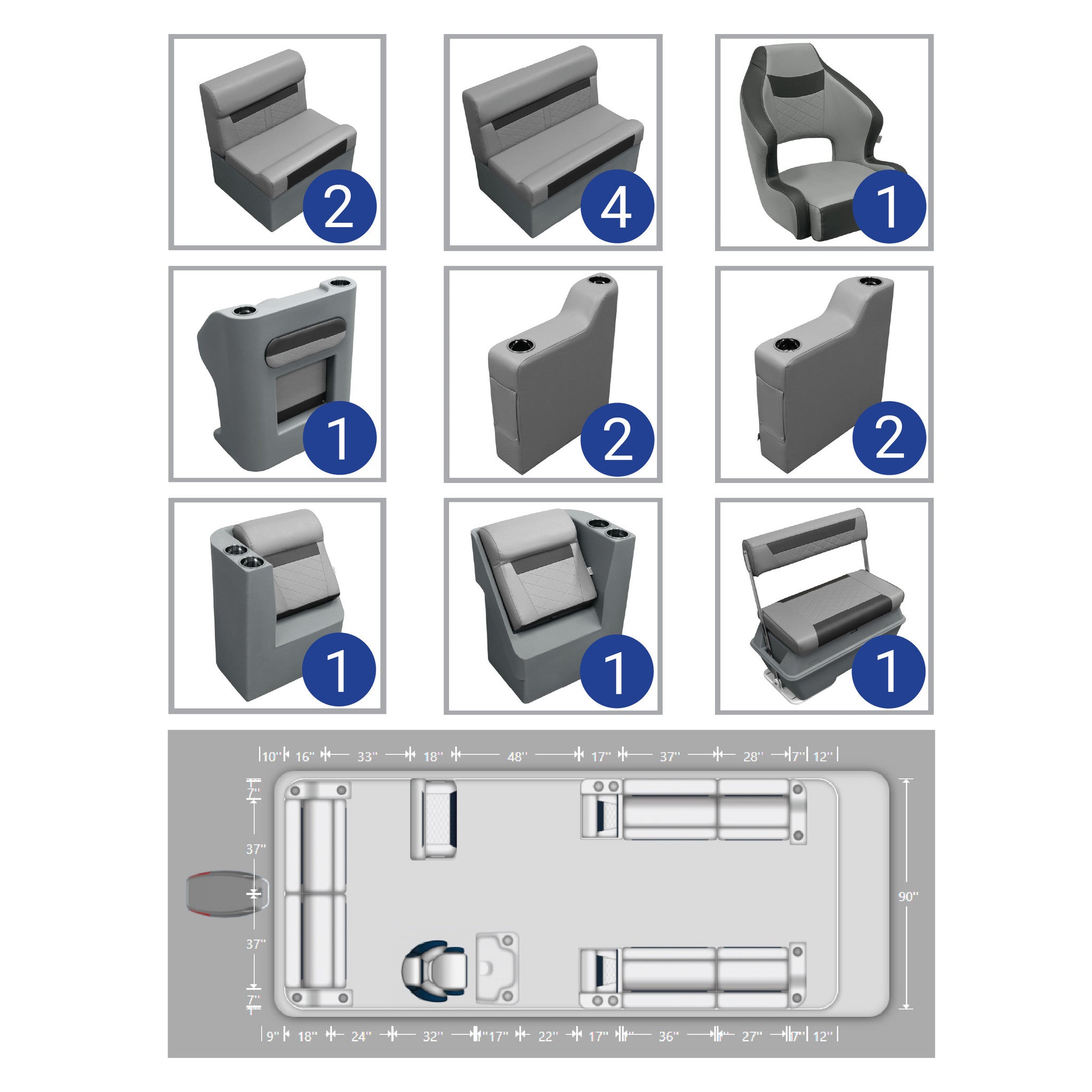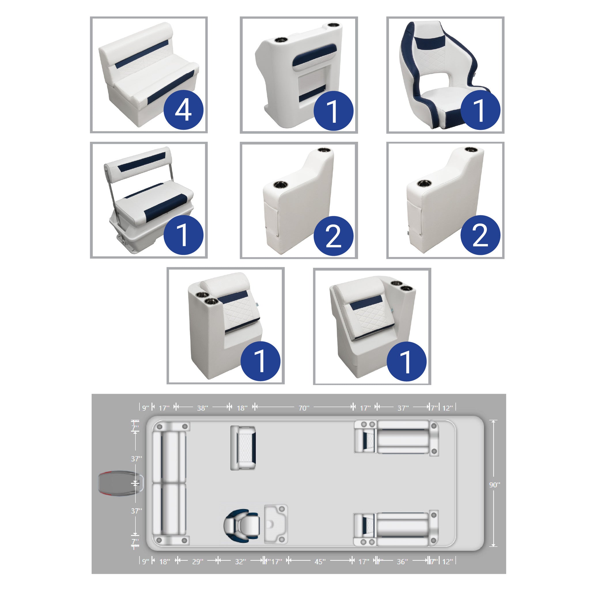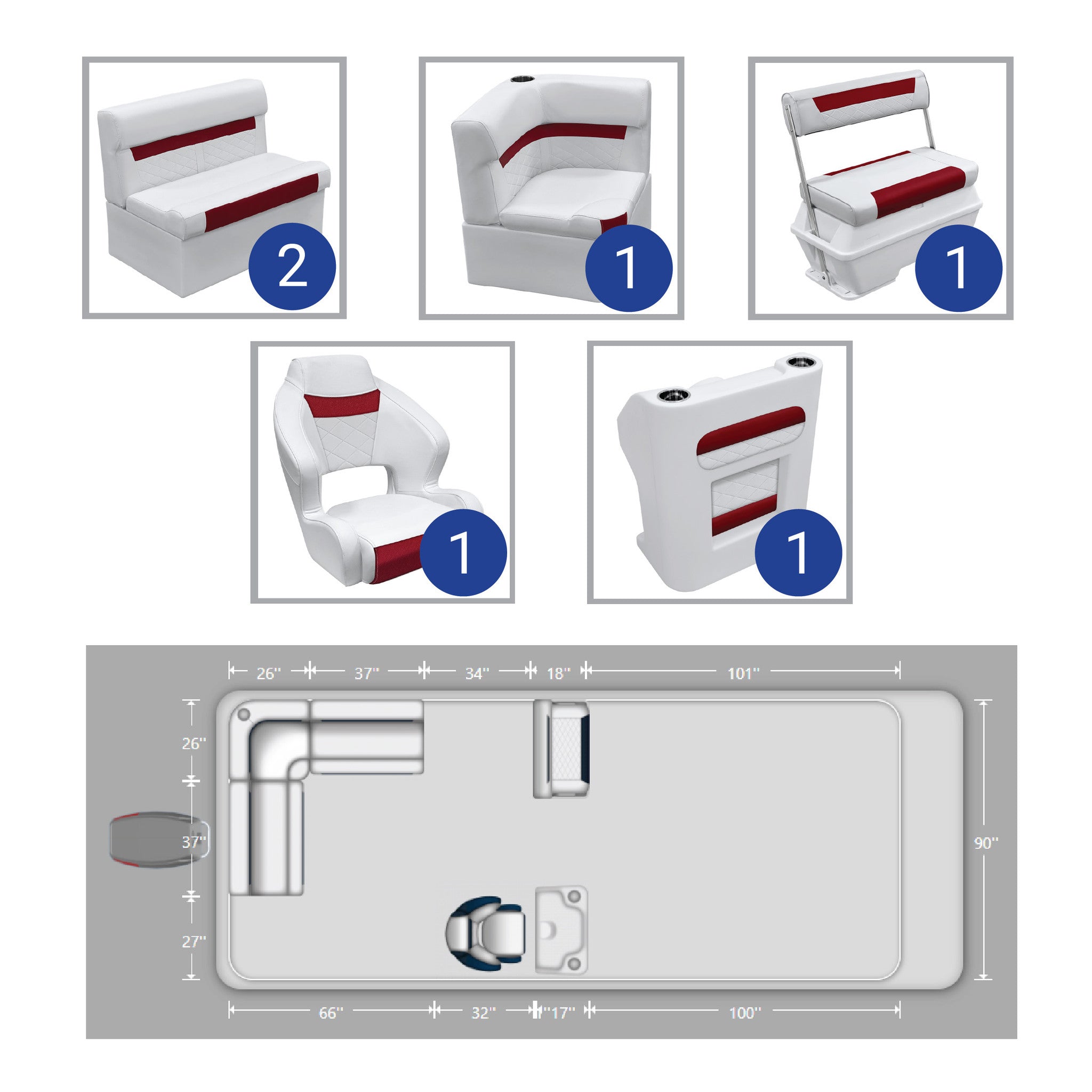 Ensemble complet de meubles pour ponton de pêche Wise DLX de 18 à 22 pieds