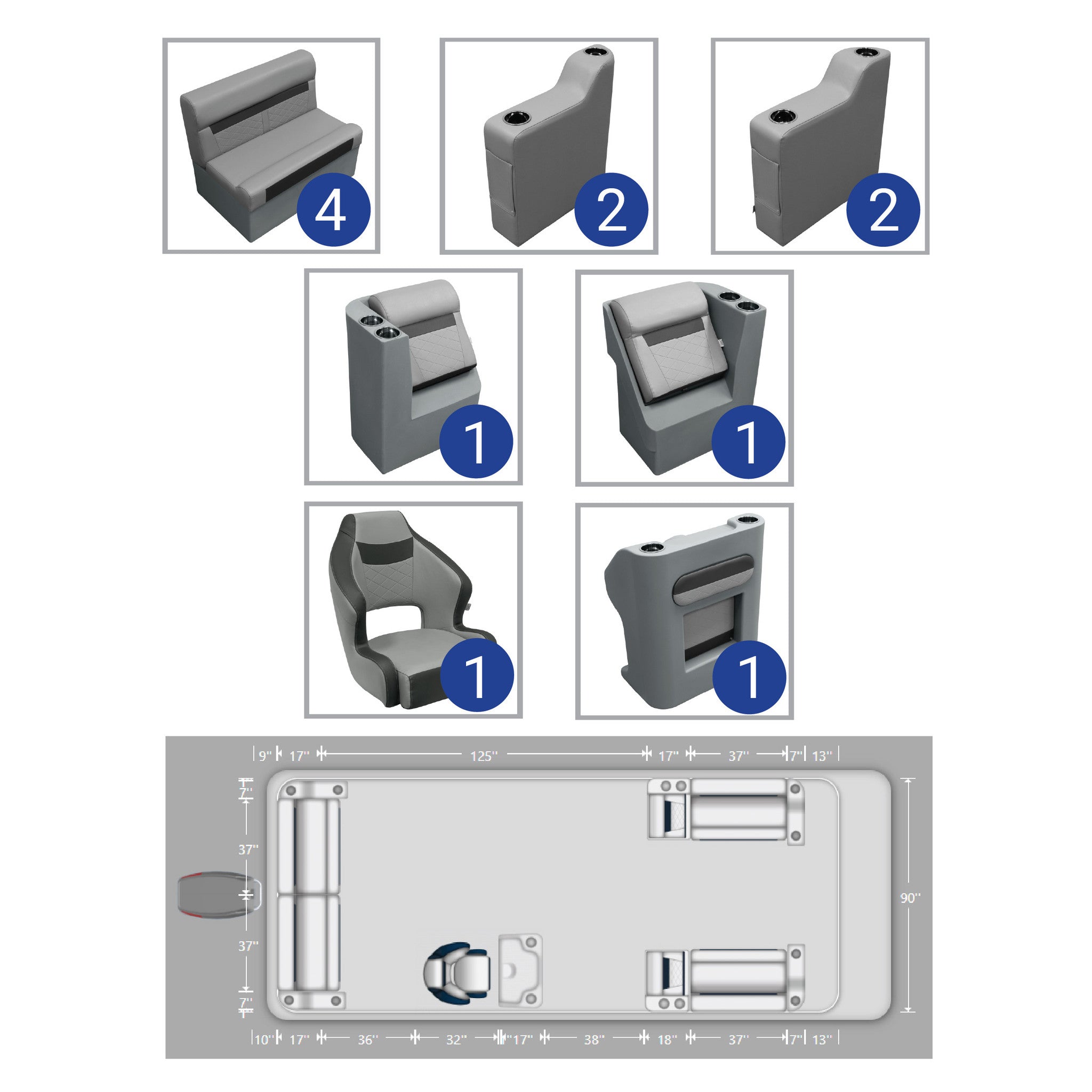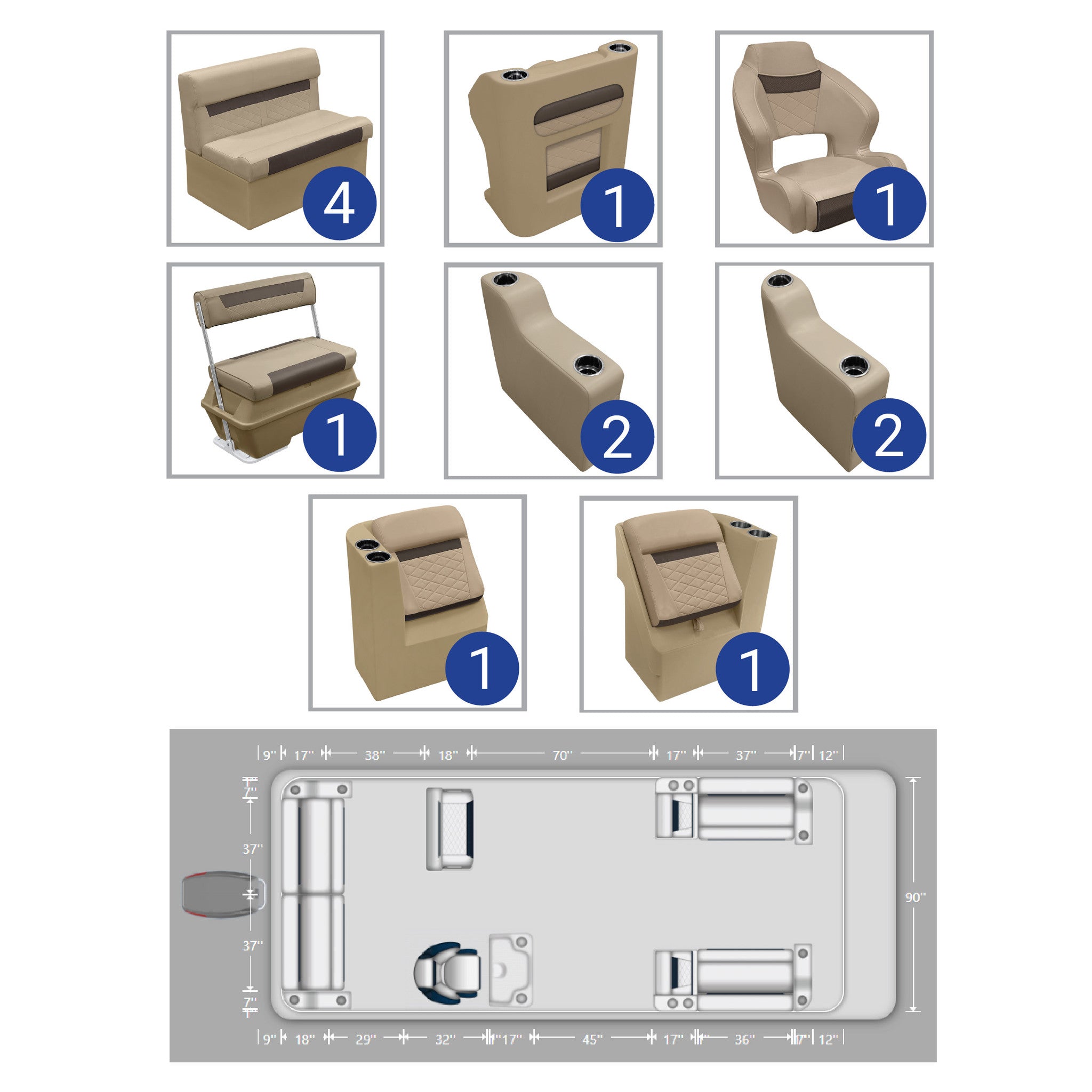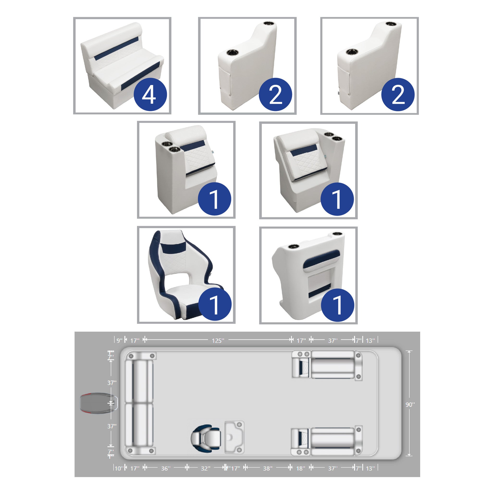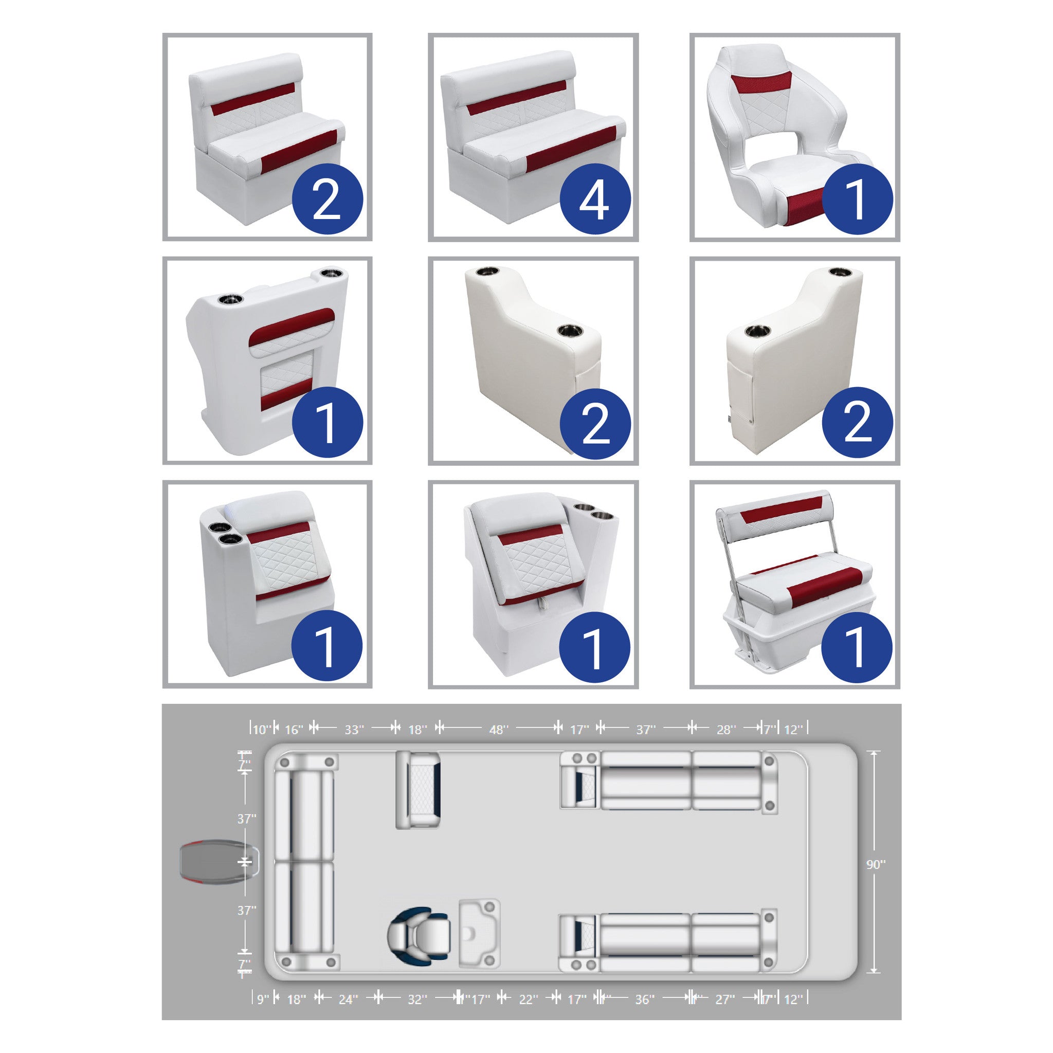 Ensemble complet de meubles pour ponton de pêche Wise DLX de 18 à 22 pieds
