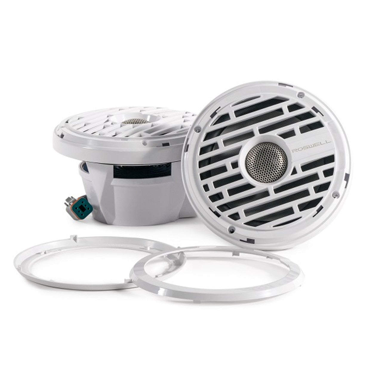Enceintes marines Roswell Marine R1 6.5. L'enceinte marine R1 6.5 offre une clarté et le son signature Roswell. Le faisceau de câbles Deutsch inclus assure une connexion étanche. Un rétroéclairage LED RVB intégré permet de créer l'image souhaitée. Testé et certifié Klippel pour garantir les performances acoustiques. Monté coaxialement, le tweeter à dôme en soie repose sur un woofer 6-12 pour un son innovant. Une bague de verrouillage dissimule tout le matériel de montage pour une installation impeccable.