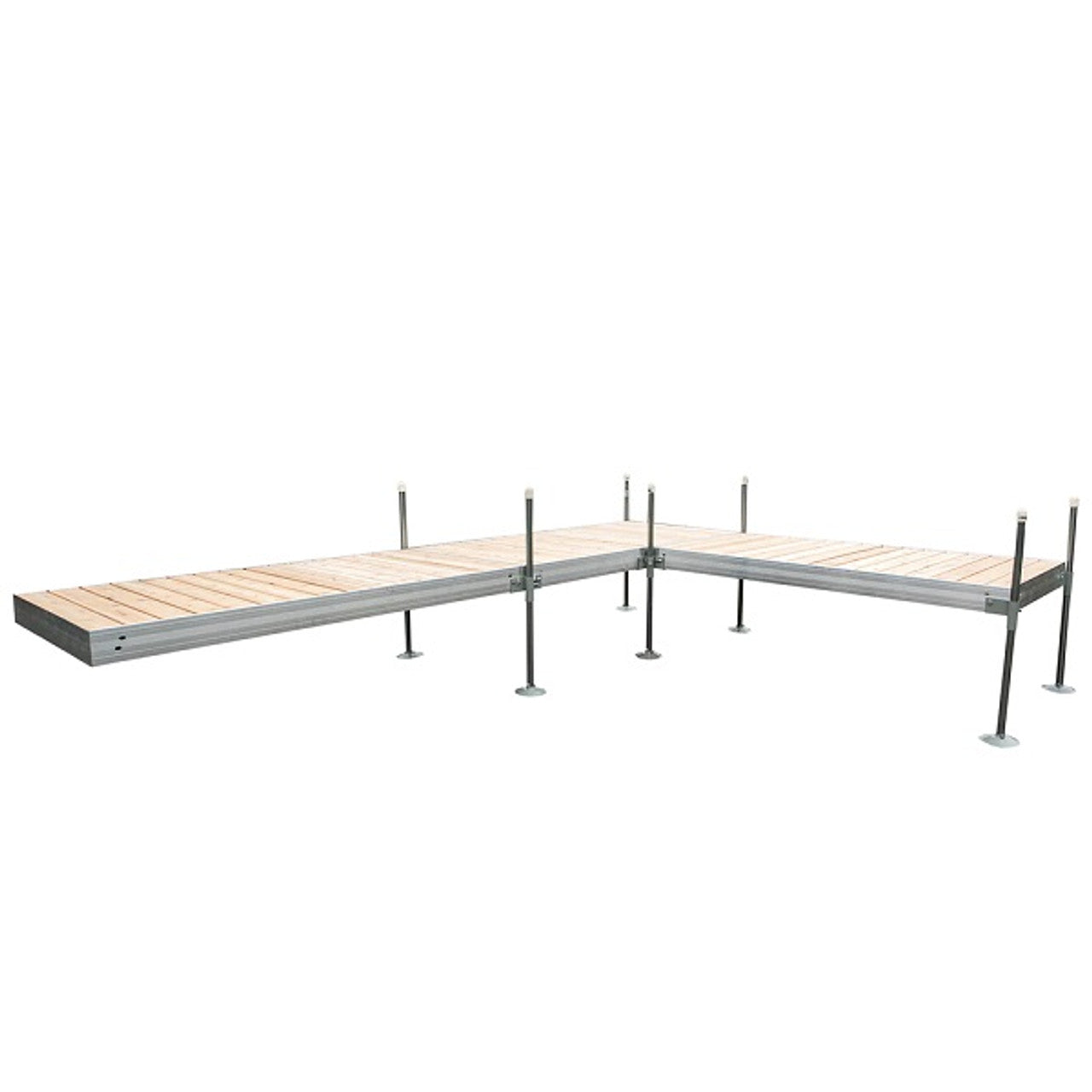 Tommy Docks Quai en L avec terrasse en cèdre. Tommy Docks propose des ensembles de quais en L tout-en-un de haute qualité, faciles à assembler et durables saison après saison. Ne nécessitant aucune découpe, cette terrasse durable est facile à monter et est livrée avec tout le matériel nécessaire à l'assemblage. Ce quai en L offre un espace supplémentaire pour jouer ou ranger vos jouets aquatiques. Tommy Docks utilise une conception modulaire pour vous offrir la flexibilité d'agrandir votre quai selon vos besoins. Fabriqué en cèdre de haute qualité.