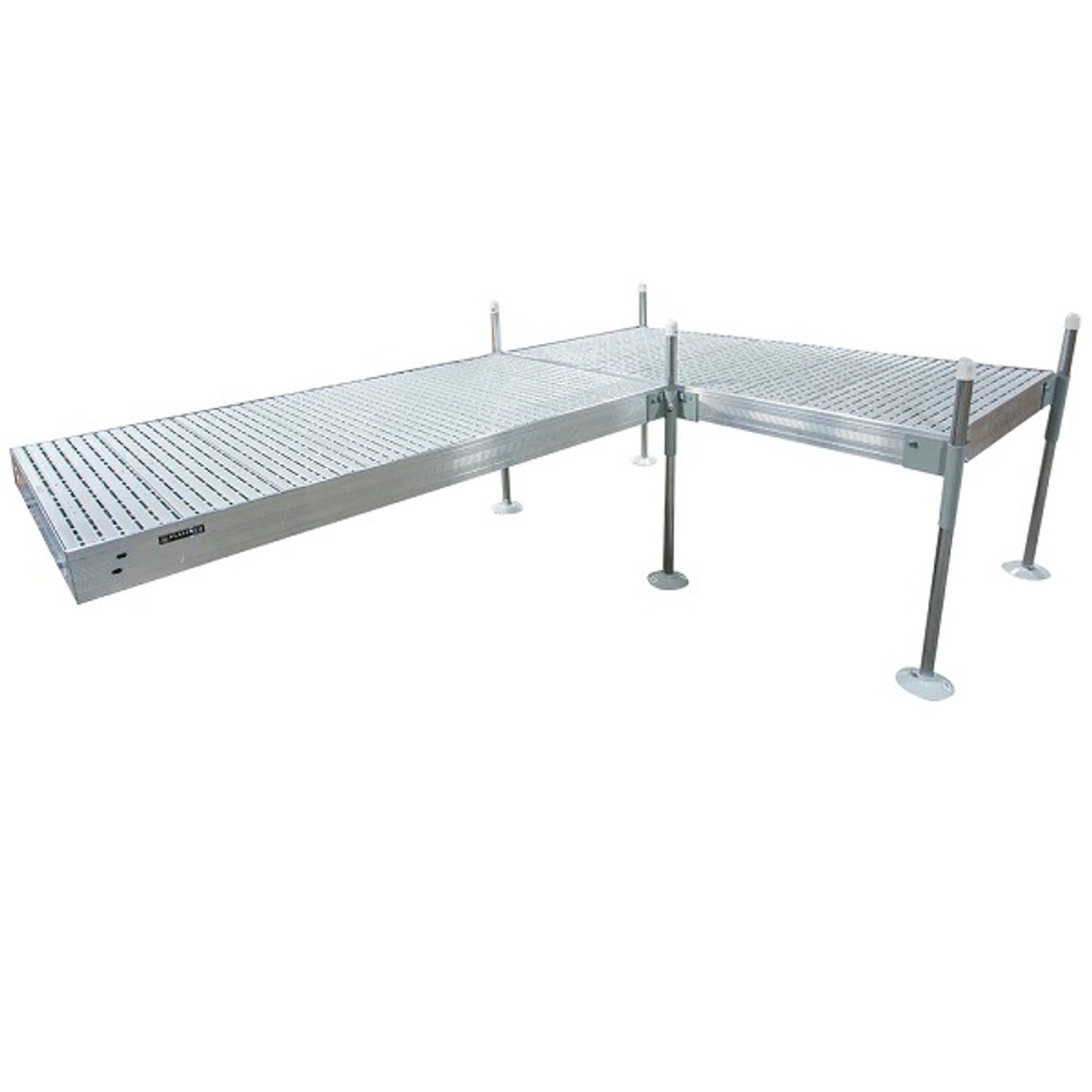 Tommy Docks Quai en L avec terrasse Titan. Tommy Docks propose des ensembles de quais en L tout-en-un de haute qualité, faciles à assembler et durables saison après saison. Ne nécessitant aucune découpe, cette terrasse durable est facile à monter et est livrée avec tout le matériel nécessaire à l'assemblage. Ce quai en L offre un espace supplémentaire pour jouer ou ranger vos jouets aquatiques. Tommy Docks utilise une conception modulaire pour vous offrir la flexibilité d'agrandir votre quai selon vos besoins. Construit avec un alliage de qualité marine.