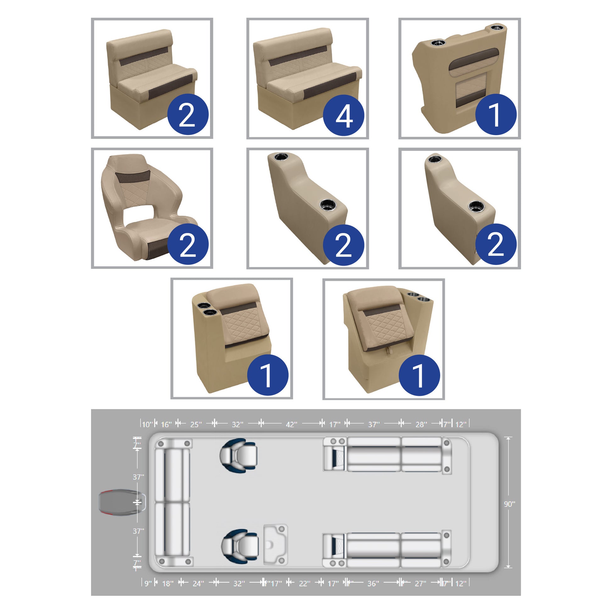 Ensemble de meubles de ponton Wise DLX Full Lounge avec deux sièges baquets