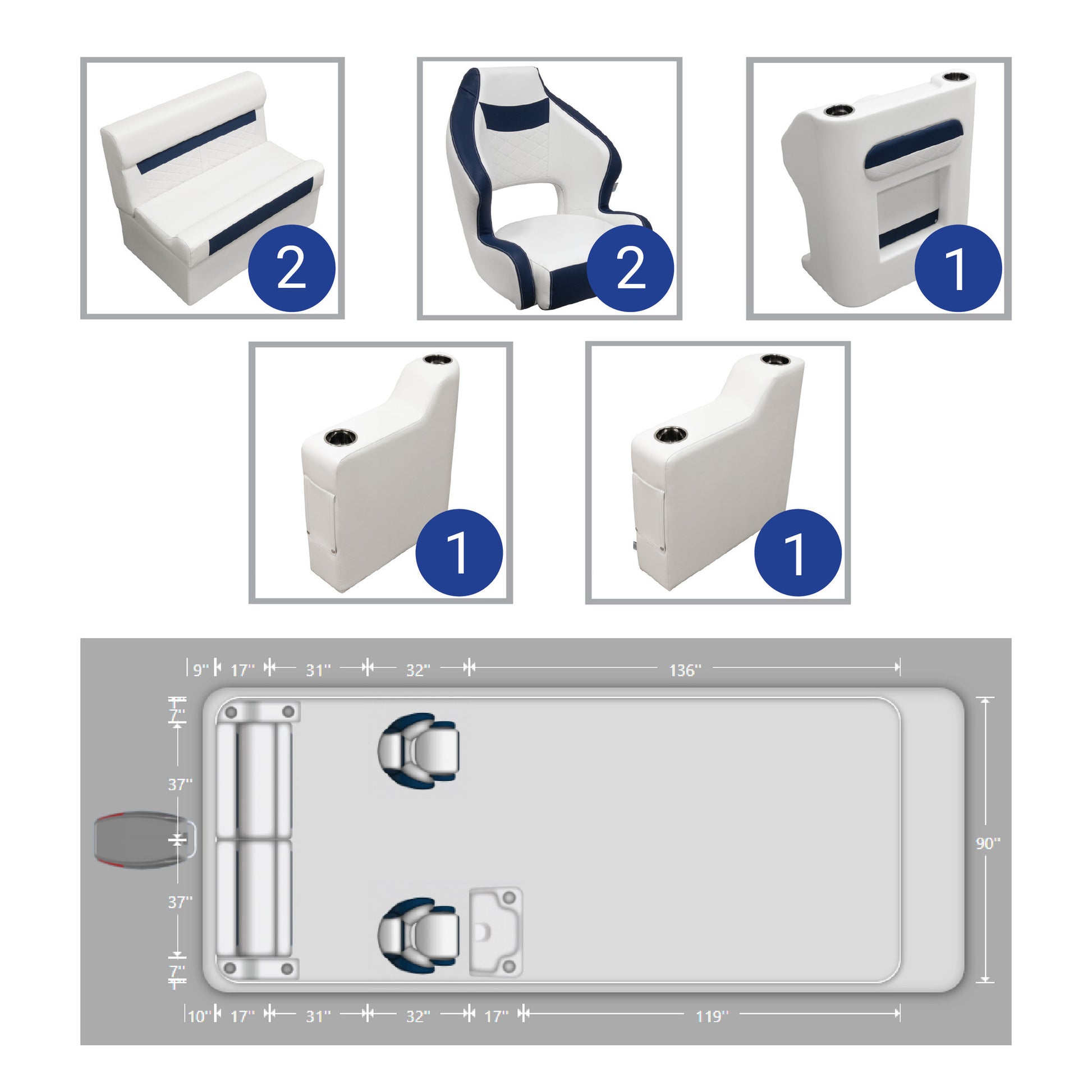 Ensemble de meubles de ponton Wise DLX avec canapé arrière et siège baquet double