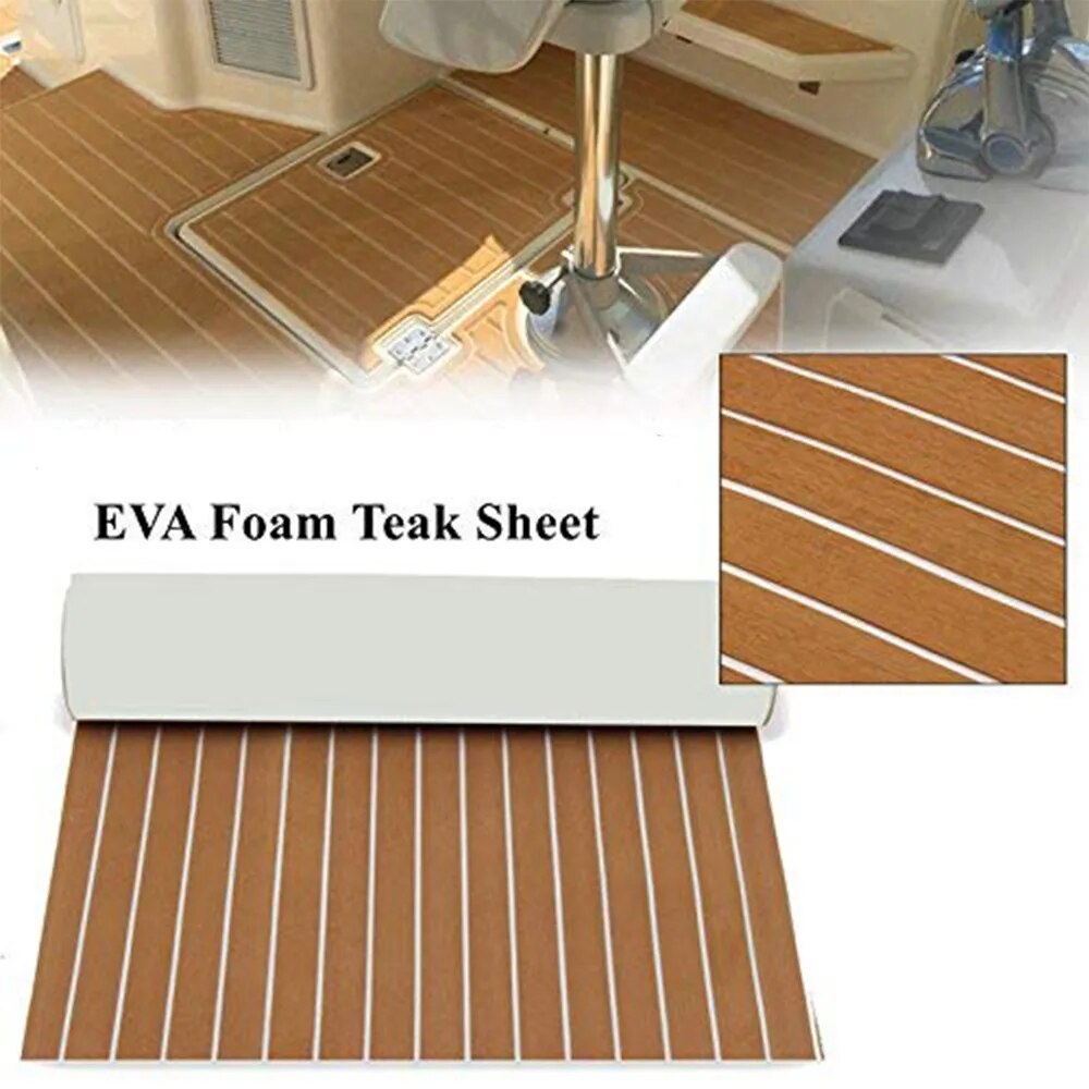 600x2400x5mm EVA Foam Faux Teak Boat Decking Mat Brown Deck Sheet