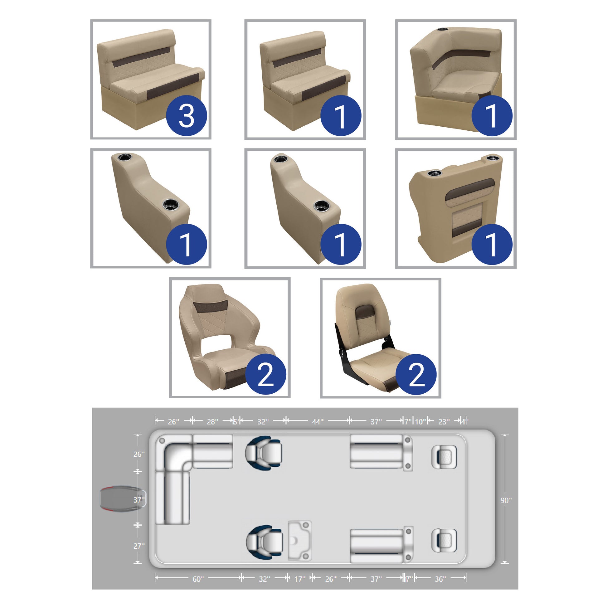 Wise DLX 18-22' Rear L Fishing Pontoon Furniture Set