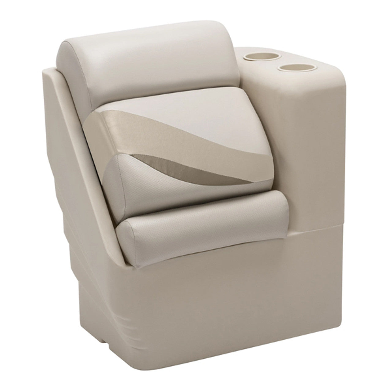 Wise BM13006R Premier Series Lean Back Recliner - Right Upgrade your pontoon seating with Wise Premier Series Pontoon Furniture. This Premier Lean Back Recliner is luxurious, long-lasting, and available in eight contemporary color combinations that look great on both old and new vessels. This recliner features soft touch 28 oz marine-grade vinyl thats loaded with UV and mildew inhibitors. The contoured cushions are stuffed with OEM-grade, high-compression foam padding for maximum support and com